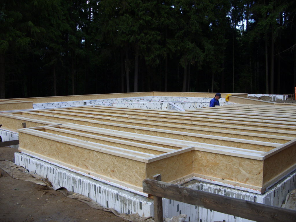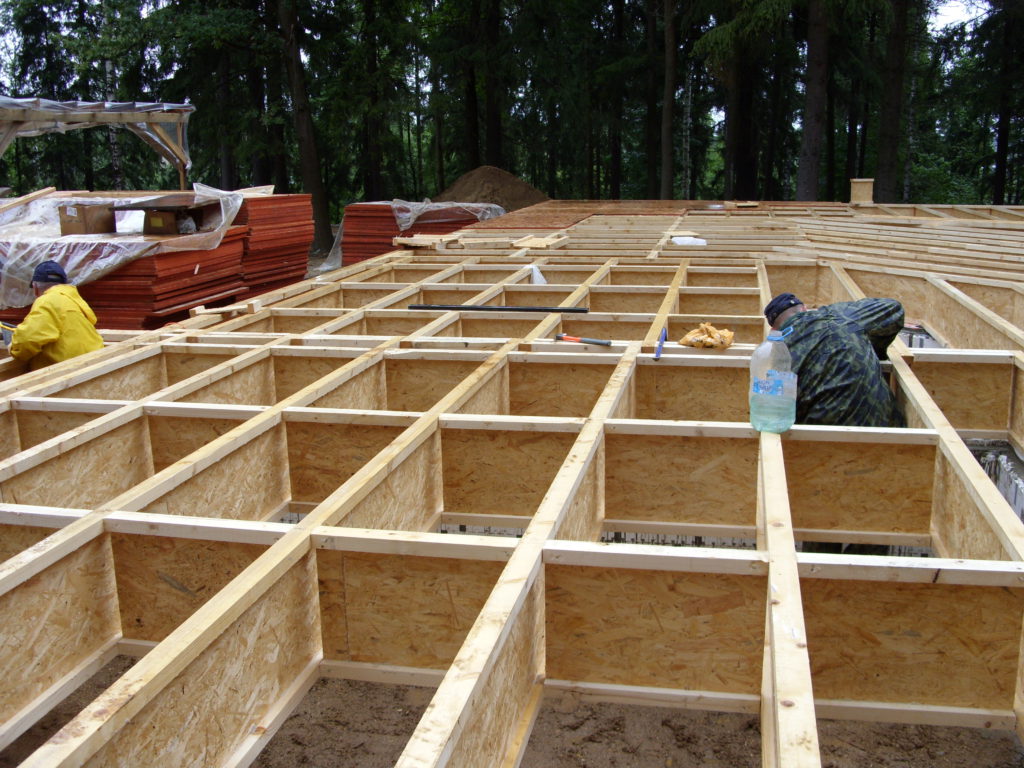 Каркасные дома, часто критикуют за «батутные» полы, бывает если есть у исполнителя непонимание технологии. У меня в большинстве домов в качестве перекрытия проектом предусматривалось использование двутавровых деревянных балок.