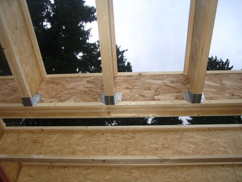 Перекрытие второго этажа монтируем аналогично, но иногда применяем металлические опоры балок.